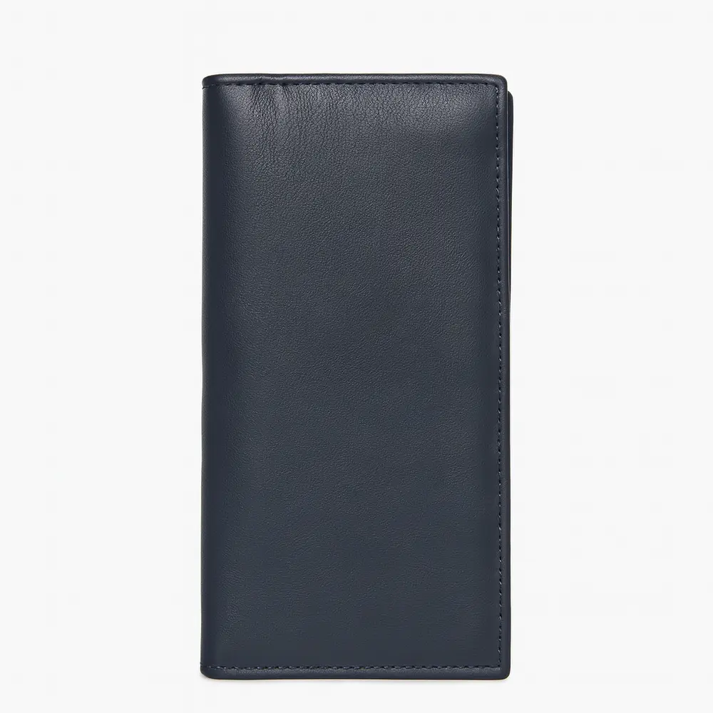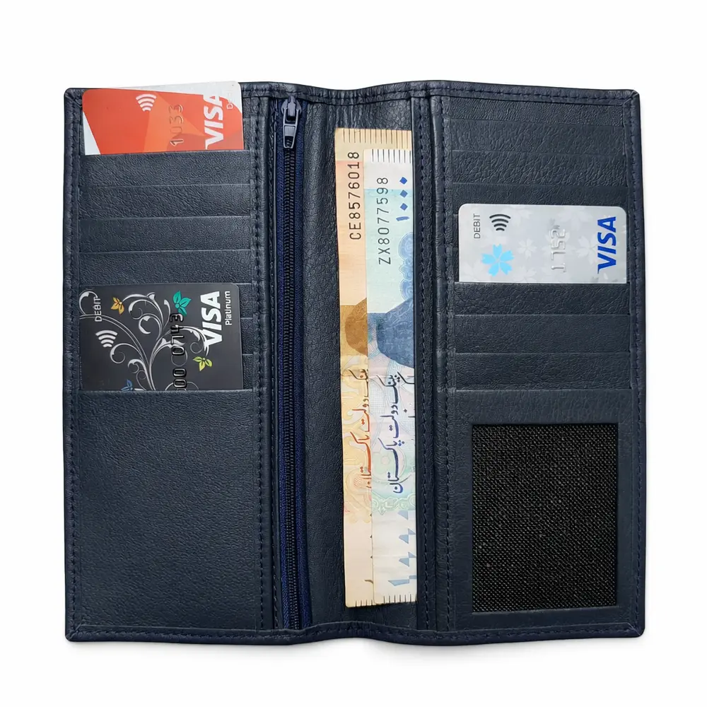 Crafted from genuine leather, this sophisticated navy blue wallet combines elegance with practicality. Designed for modern organization, it features 18 card slots, 2 spacious cash slots, and a secure zippered compartment for coins or bills. The dedicated mobile slot doubles as a money pocket for added versatility. Built to last, its durable construction ensures everyday reliability without compromising on refined style.